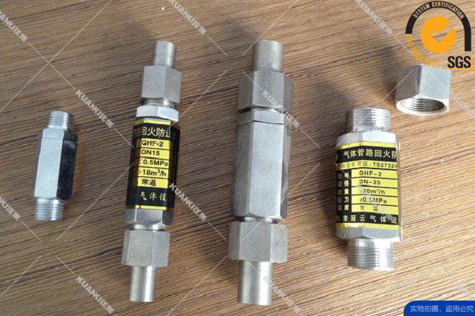⑤在发生回火时能自动切断气源。堵塞管路。
